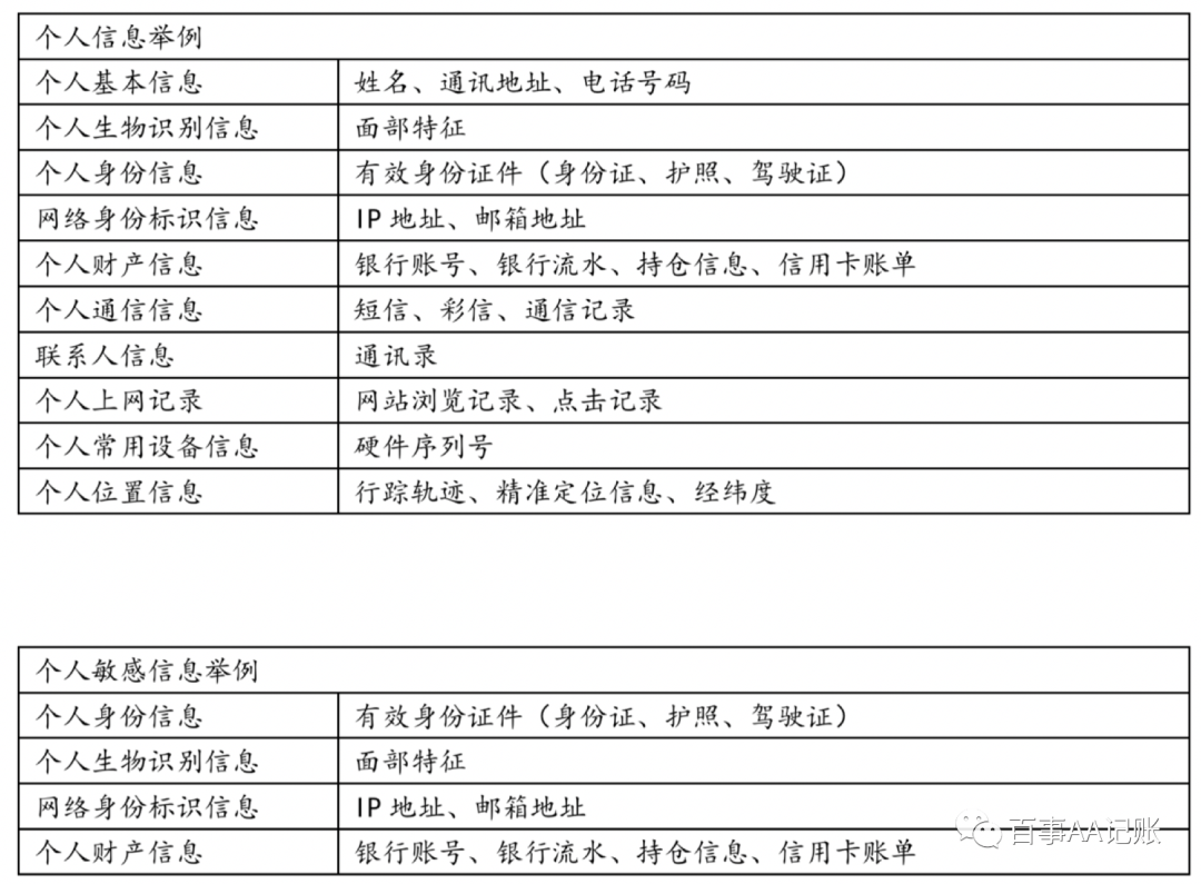 依据《中华人民共和国网络安全法》,个人信息是指以电子或者其他方式记录的能够单独或者与其他信息结合识别特定自然人身份或者反映特定自然人活动情况的各种信息,包括但不限于自然人的姓名、出生日期、身份证件号码、个人生物识别信息、住址、电话号码。百事记账中与您个人无关的信息不属于您的个人信息。依据中华人民共和国国家标准(GB/T35273)《信息安全技术-个人信息安全规范》,个人敏感信息包括身份证件号码、个人生物识别信息、银行账号、通记录和内容、财产信息、征信信息、行踪轨迹、住宿信息、健康生理信息、交易信息、14岁以下(含)儿童的个人信息等(但我们不会收集上述全部个人敏感信息,仅依照本隐私政策及业务需求收集与我们提供服务有关的必要信息)。在本隐私权政策的尾部,我们以列表的形式列示出个人信息和个人敏感信息的具体类型和范围,本隐私权政策涉及到个人信息时会以字体加粗及下划线的方式进行显著标识,方便您进行查看。